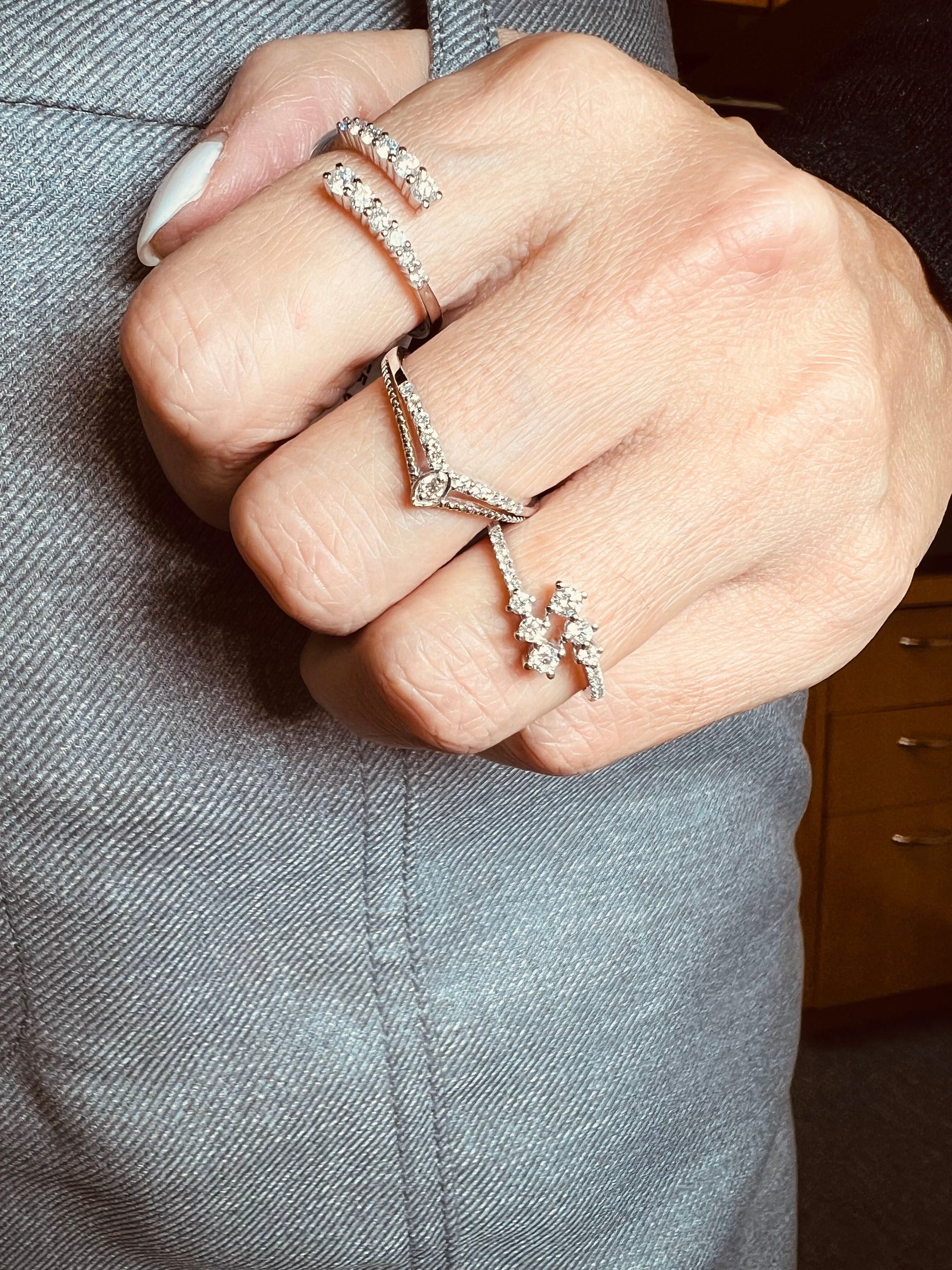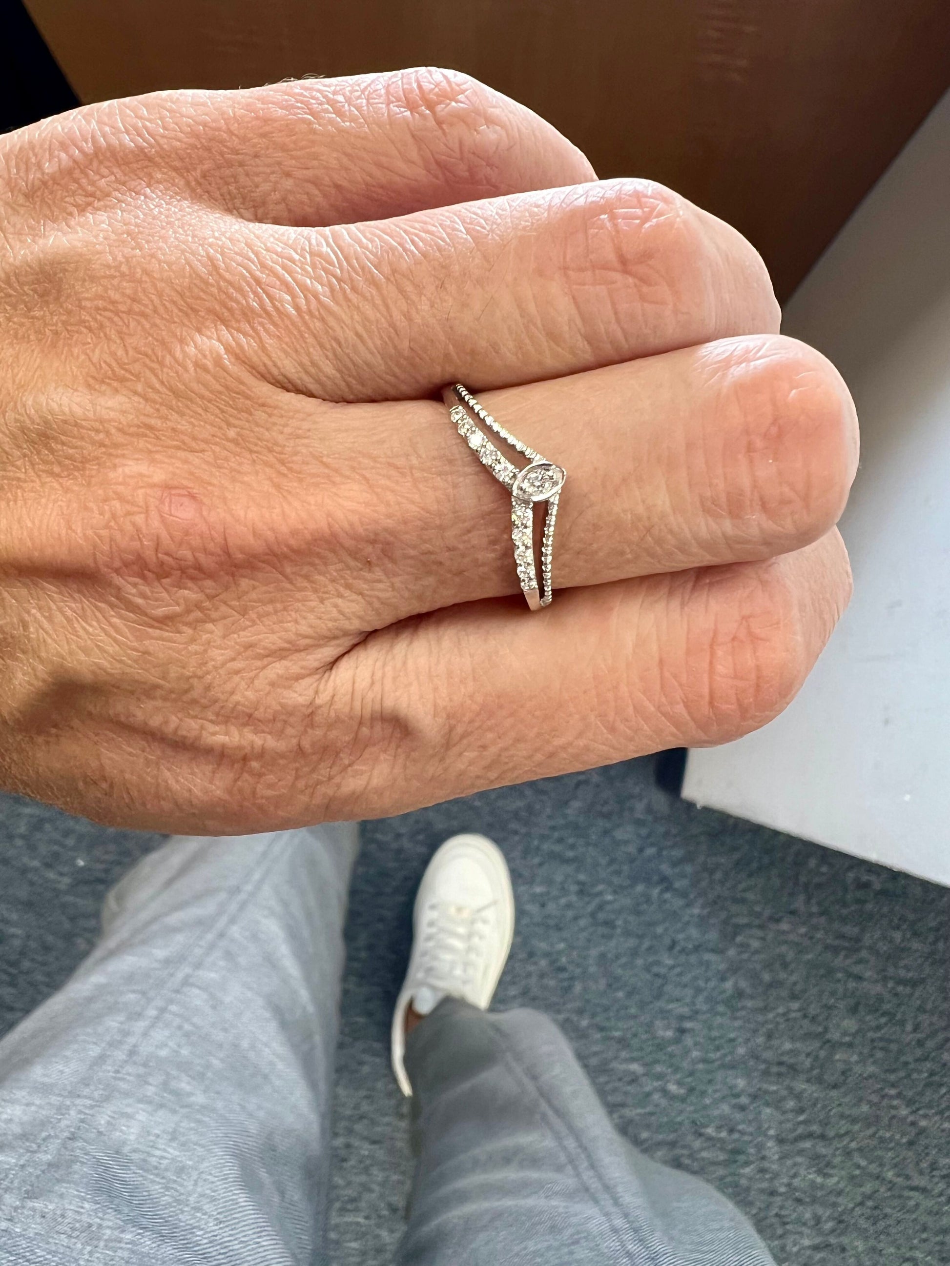 The Designer Diamond Ring is a beautiful and delicate ring that can be worn everyday. Wear the diamond ring on your finger in a sleek style that is bound to make an impression. Beautiful worn alone or together with other rings.