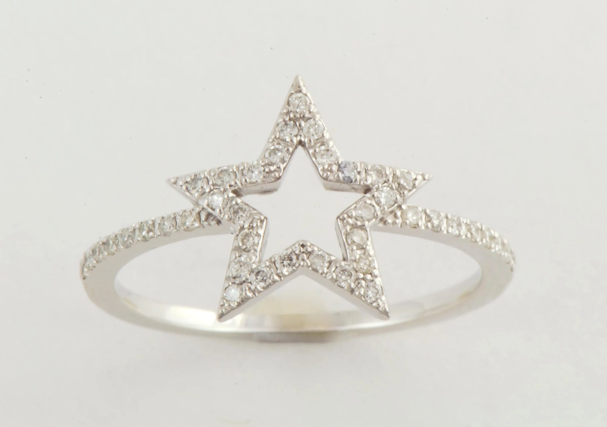 14k Gold Diamond Open Star Ring