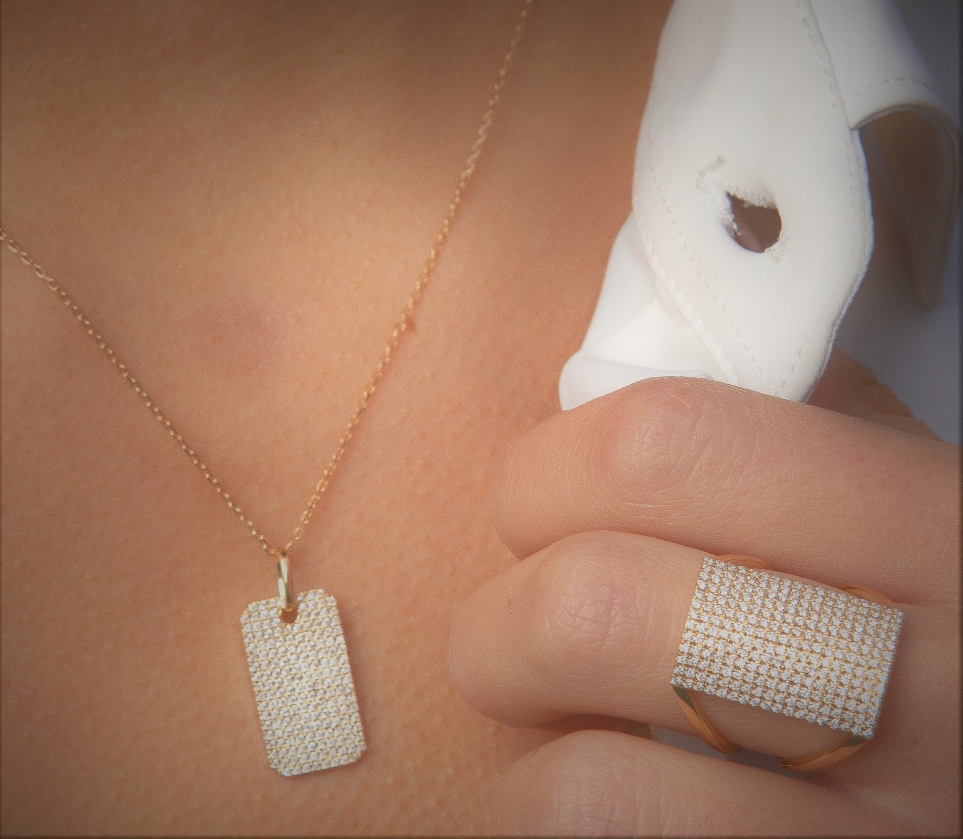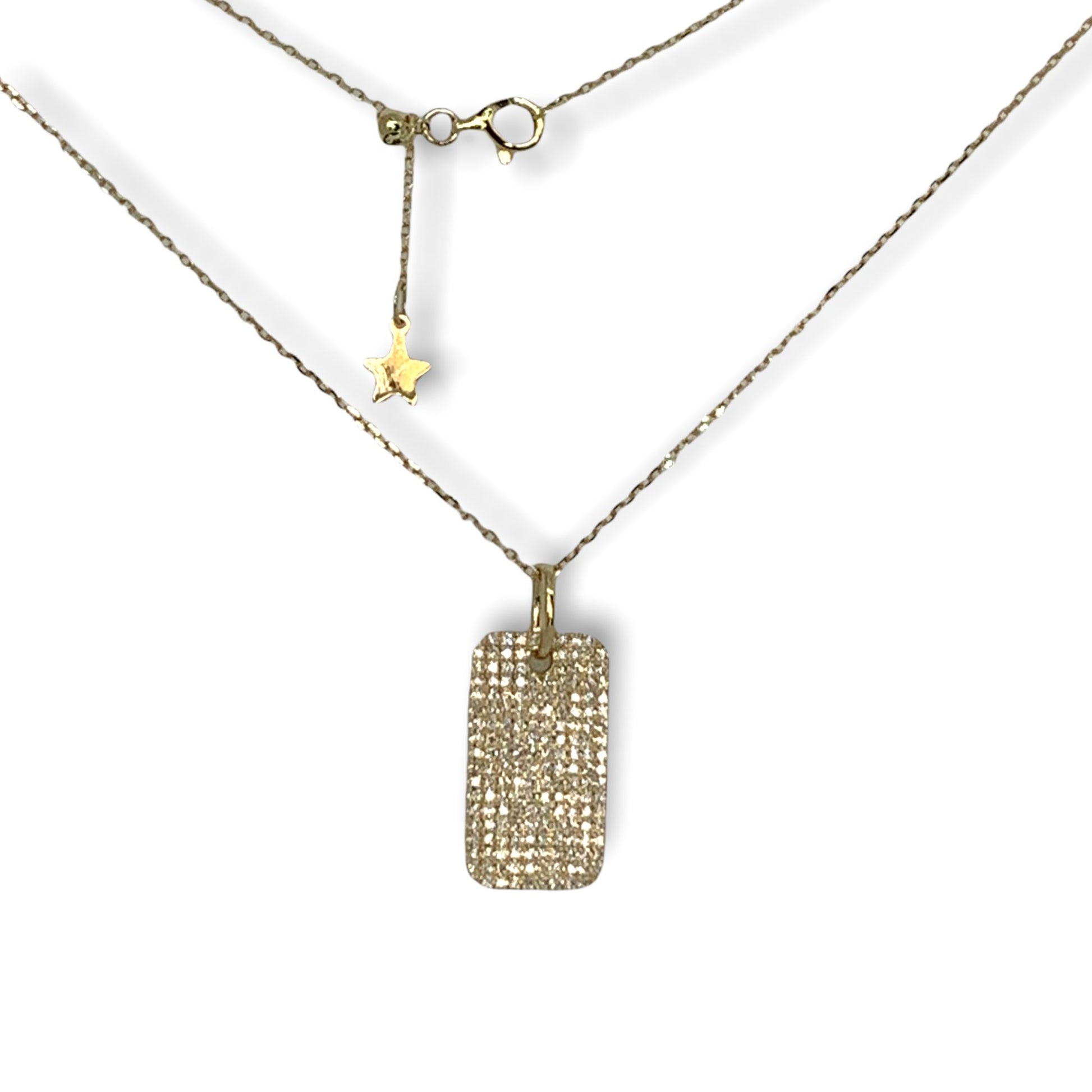 14k Gold Rectangular Dog Tag Diamond Pendant