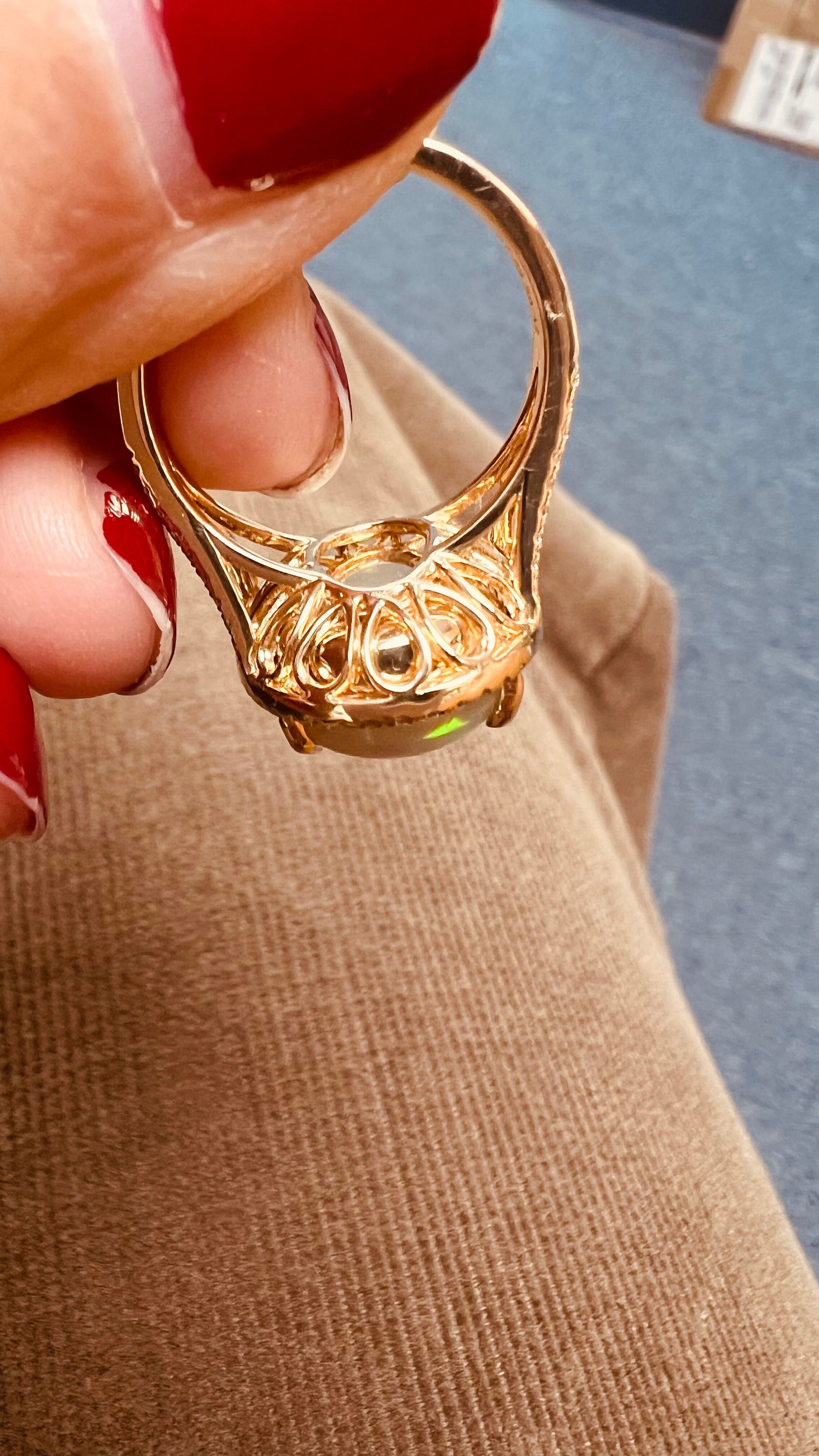 Handmade 14k Gold Opal & Diamond Ring, Dainty Statement Ring